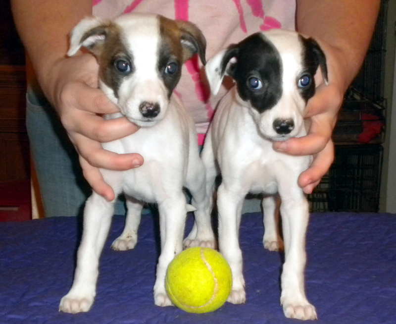Puppy Girl - black/white Shannon Down Locked & Loaded "Briony" Puppy Boy - red/white Shannon Down Fully Loaded "Pietros"