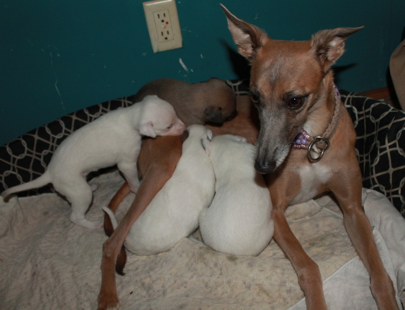 Puppy Boy - white/blue fawn Shannon Down Sweet Gherkin "Gherkin" Puppy Girl - white Shannon Down Half Sour "Shea" Puppy Girl - white/blue fawn Shannon Down Bread & Butter At Xcaliber "BeeBee" Puppy Boy - blue fawn Shannon Down Spicy Kimchi "Cody"